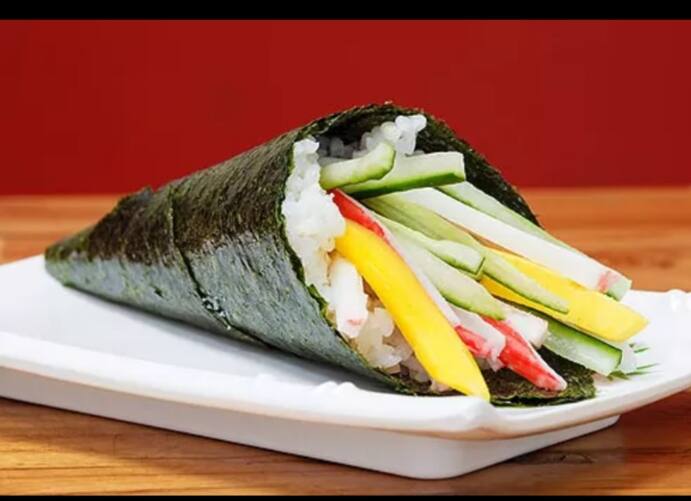 Recheado com pepino ,manga kani e arroz