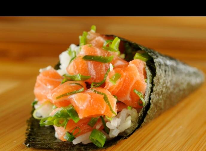 Salmão em cubos com arroz